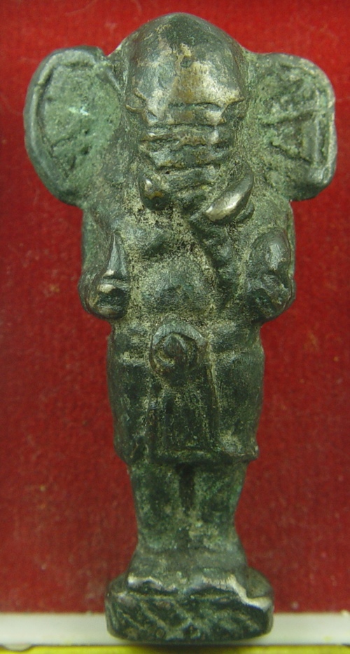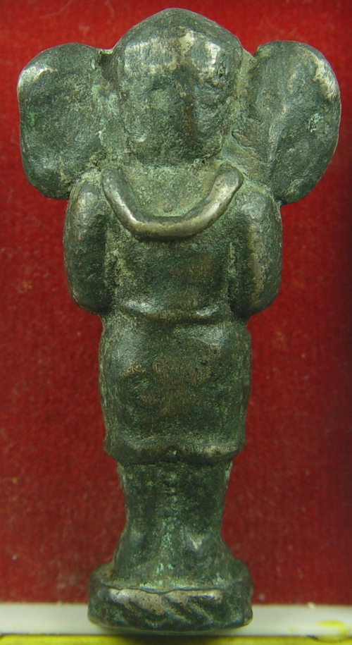 พระพิฆเนศโบราณ พิมพ์ยืน หายาก เนื้อโลหะสำริดโบราณพันปี เดิมๆ ให้สังเกตคราบสนิมเขียวครับ เวลาวางวัตถุมงคลไว้บนมือจะมีน้ำหนักหน่วงมือ เนื่องจากมวลสารที่ทำเป็นสำริดโบราณครับ สูงประมาณ ๔.๕ เซนติเมตรครับ |