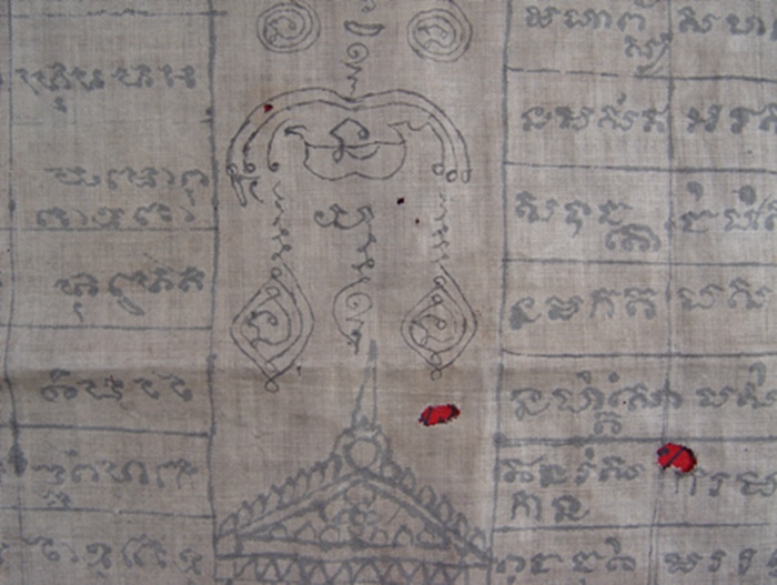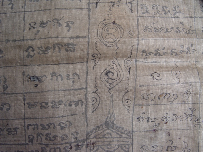 สุดยอดมหายันต์ ของสุดยอดเกจิอาจารย์ หลวงพ่อกลั่น วัดพระญาติการาม อยุธยา เขียนมือทั้งผืนด้วยน้ำหมึกเก่า โบราณ ผ้าที่ใช้เขียนบางเฉียบ ยันต์ธงเอกลักษณ์ ยันต์ครู(ที่ปรากฎบนหลังเหรียญของท่าน) อักขระโบราณเต็ม ครบสูตร ครบครัน "มีติดไว้กับบ้านเรือน เคหะสถาน ร้านค้า ไม่มีตกต่ำ" ขนาดประมาณ 16นิ้วx 32 นิ้ว |