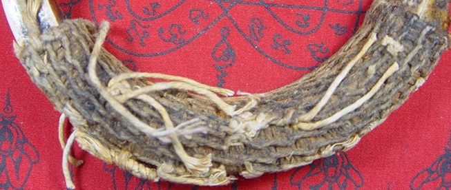 เขี้ยวหมูตัน เจ้าปู่สมเด็จลุน วัดบ้านเวินไซ แขวงจำปาสัก ประเทศลาว ของตกทอดจากหลานหลวงปู่ ซึ่งปัจจุบันหลานหลวงปู่อายุประมาณ ๘๐ ปีแล้วครับ อยู่ที่สหรัฐอเมริกา สุดยอดหายาก อยากทราบประวัติโทรคุยได้ครับ หลวงปู่เป็นอาจารย์ หลวงปู่ญาท่านสวน หลวงปู่คำบุ วัดกุดชมภู พันด้วยด้ายสายสิญจ์เก่ามากครับ |