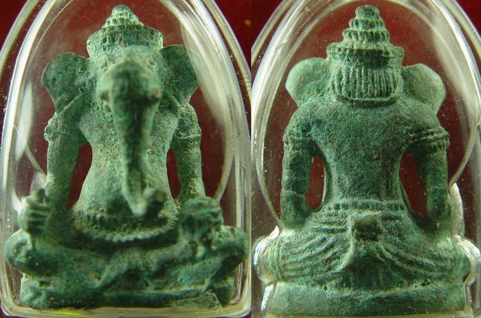 พิฆเนศโบราณ จากกรุ เต็มไปด้วยสนิมเขียวและคราบกรุครับ ศิลปะแบบขอมโบราณ หน้าตักกว้าง ๒ เซนติเมตร สูง ๓ เซนติเมตร ห้อยคอได้สบายๆครับ สวยๆแบบนี้หายากมากครับ |