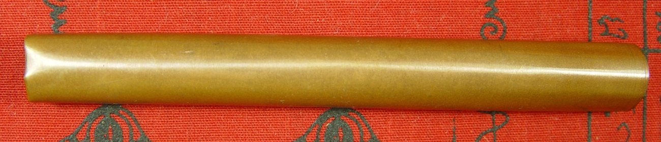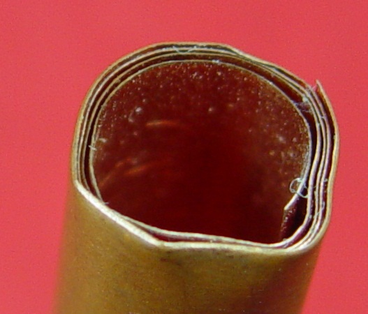 ตะกรุดหลวงปู่อ่วม หนองคาย ข้อห้ามในการใช้ตะกรุดหลวงปู่คือ "ห้ามลองยิง" จารมือทั้งดอกครับ ยาว ๙ เซนติเมตร เส้นผ่าศูนย์กลาง ๑ เซนติเมตร |