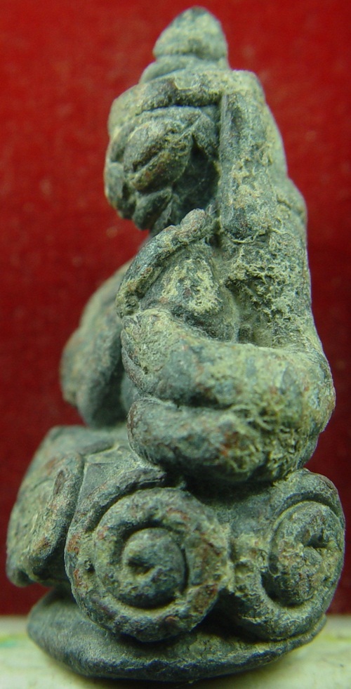 อุปคุตเขมรพันปี(กรุปราสาทภเตชมา) เนื้อสำริดขอมโบราณพันปี มีน้ำหนักหน่วงมือมากครับ ฐานกว้าง ๒ เซนติเมตร สูง ๓.๕เซนติเมตร จากฝั่งเขมร กรุเขมร กรุณาสังเกตุคราบกรุของกรุปราสาทภเตชมานะครับ เป็นสนิมแดง ต่างจากกรุปราสาทเขาขาด ลักษณะศิลปะก็ต่างกันครับ สวยมากครับ สมบูรณ์ ๑๐๐% สภาพวัตถุมงคลอายุ ๑๐๐๐ ปีต้องเป็นอย่างนี้ ของปลอมมีในสนามแล้วครับ ********************** การสร้างรูปหล่อทางพระพุทธศาสนา ตามปราสาทต่างๆของขอมโบราณนั้นเกิดขึ้นในช่วงที่มีการเปลี่ยนเทวสถานเป็นพุทธสถาน ดังนั้นรูปหล่อที่บรรจุกรุตามปราสาทต่างๆนั้นจึงผสมผสานระหว่างพุทธศาสนาคือ พระพุทธ พระสังกัจจายน์ พระอุปคุต เป็นต้น ส่วนรูปหล่อทางพราหมณ์นั้น ส่วนมากจะเป็นเทพ เช่นพระนารายณ์ พระพิฆเณศ เป็นต้น ดังนั้นความขลังของวัตถุมงคลเหล่านี้จึงเป็นที่ยอมรับกันโดยทั่วเพราะผ่านพิธีกรรมทั้งสองศาสนาครับ |