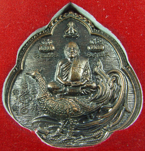 หลวงปู่สรวงนั่งบนไก่ฟ้า หลังนารายน์ทรงสิงห์คู่ นาคคู่