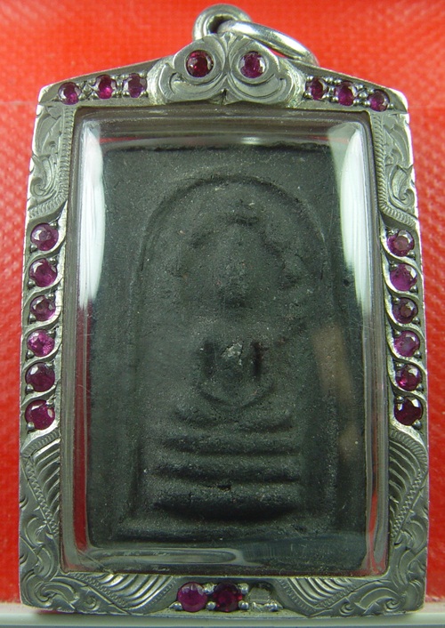 คุณแม่บุญเรือน โตงบุญเติม พระผงมงคลมหาลาภ พระที่ลูกศิษย์ลูกหาคุณแม่ถวิลหาไว้บูชาติดตัว เลี่ยมเงิน รอบด้วยพลอยแดงเดิมๆ พร้อมใช้ ของจริงหายากแล้วครับ บรรยายด้วยภาพ