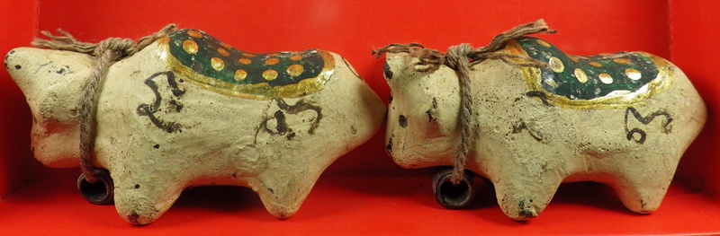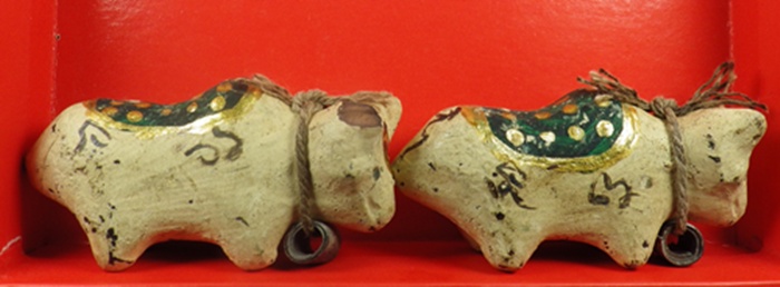 | วัวธนูเก่า เนื้อผงเก่า จารยันต์ คล้องตะกรุดจารยันต์เก่า สวย | ||