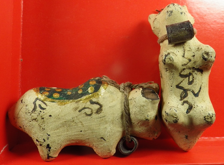 วัวธนูเก่า เนื้อผงเก่า จารยันต์ คล้องตะกรุดจารยันต์เก่า สวย ปกป้องคุ้มครอง เป็นเยี่ยม |