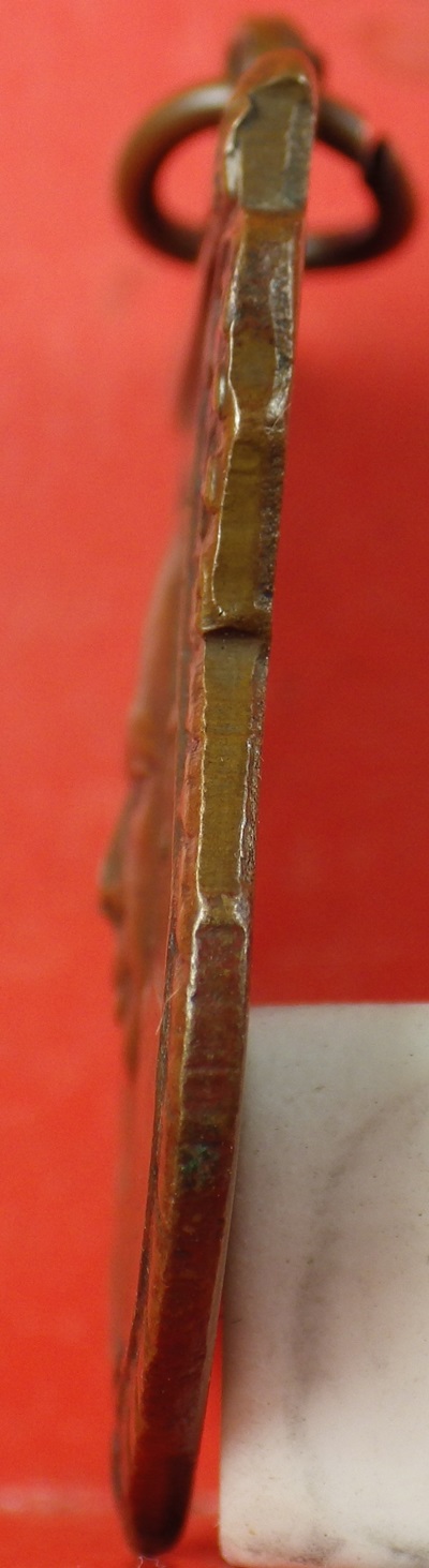 เหรียญปี 2500 หลวงพ่อเงิน วัดดอนยายหอม เนื้อทองแดง สภาพใช้แต่ยังเยี่ยม รมดำยังมีให้เห็น น่าใช้ ห่วงเดิม อยู่ครบ |