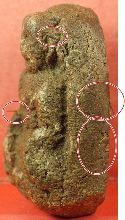 พระเนื้อผงว่านเกศาเกจิเก่า ไม่ทราบที่ นั่งบนหัวกะโหลก มีเกศาเต็มองค์ สวยมาก เก่า |