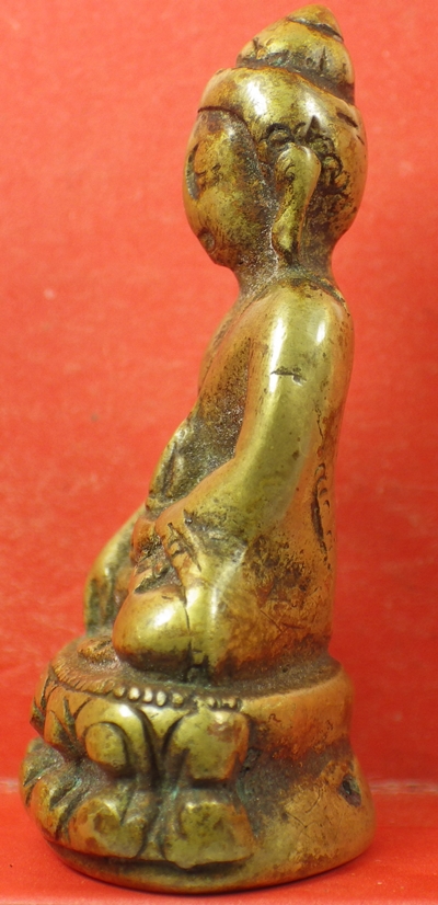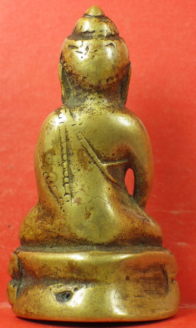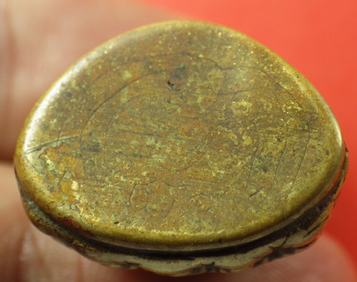 พระกริ่งพรหมมุณี สมเด็จพระสังฆราชแพ พ.ศ.2458 สูง 3.7เซนติเมตร ฐานกว้าง 2.0 เซนติเมตร มีจารอักขระเต็มองค์พระ ฐาน หน้า หลัง |