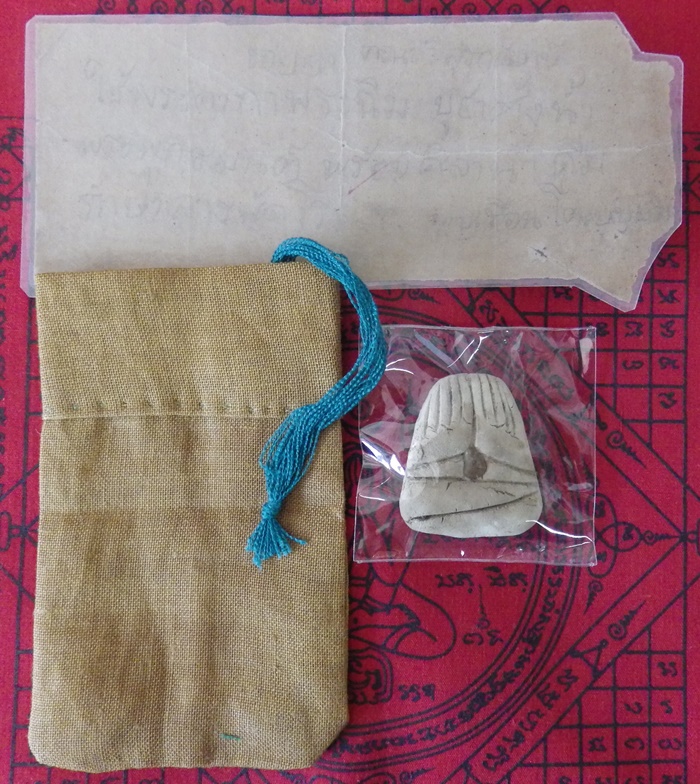 ถุงเหนี่ยวทรัพย์ +แผ่นจารมือคุณแม่บุญเรือน วิธีตั้งน้ำพระพุทธมนต์ กำกับด้วยคาถาพระฉิม และ พระปิดตาพุทโธฝังศิลาน้ำ หายากมาก .... |