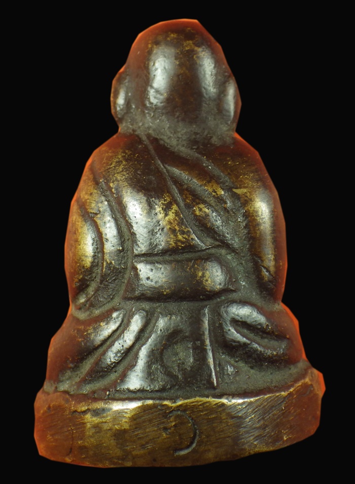 รูปหล่อโบราณพระครูทองสุข สวยมาก เก่า สมบูรณ์ 100% รูปหล่อโบราณ รอยตะไบหยาบ ตอกโค๊ตเลข ๑ ด้านหลัง |